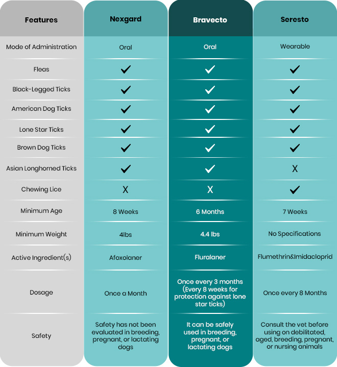 NexGard vs Bravecto vs Seresto – Comparison Chart