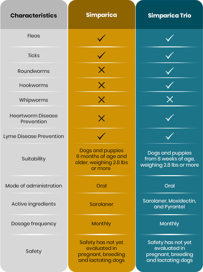 Simparica and Simparica Trio – Comparison Table
